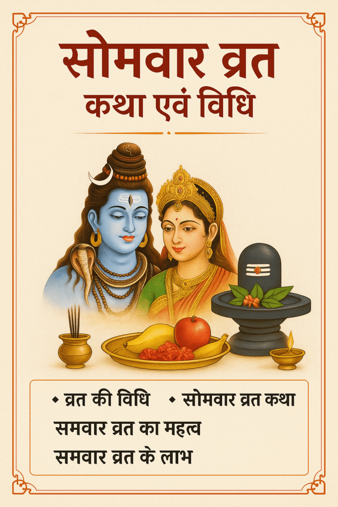 рд╕реЛрдорд╡рд╛рд░ рд╡реНрд░рдд рдХрдерд╛ рдПрд╡рдВ рд╡рд┐рдзрд┐: рдорд╣рддреНрд╡, рдкреВрдЬрд╛-рд╡рд┐рдзрд┐, рд▓рд╛рдн рдФрд░ рдкреВрд░реА рдкреМрд░рд╛рдгрд┐рдХ рдХрдерд╛ (Somvar Vrat Katha & Vidhi in Hindi)